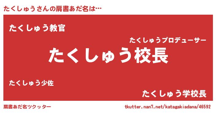 | 胡散臭い通販商品みたいなあだ名 | 『絶対に幸福をもたらす健康食品…その名も「たくしゅう」』 |