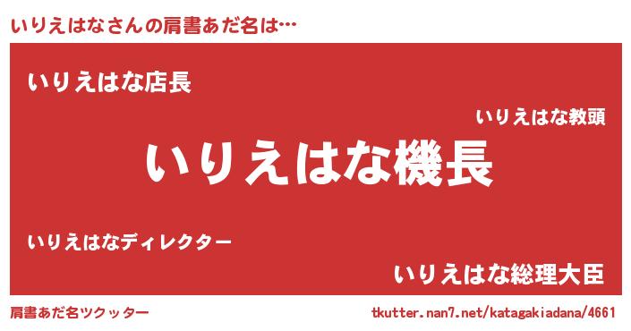 | 欧米人風あだ名 | 『いりえはな・ステッグマイヤー』 |