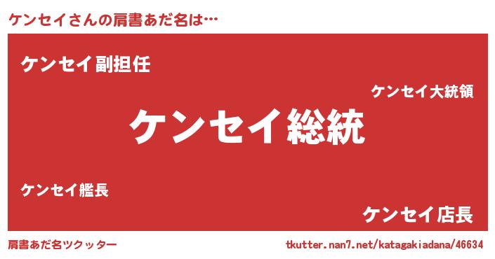 | 男性向けラノベタイトル風あだ名 | 『Re:ケンセイから始める異世界生活』 |