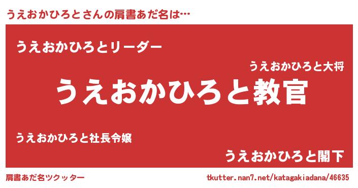 | 男性向けラノベタイトル風あだ名 | 『魔弾の王とうえおかひろと』 |