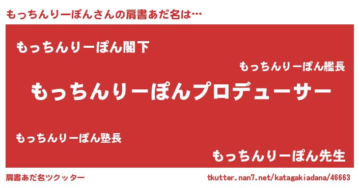 | 欧米人風あだ名 | 『アンジェラ・もっちんりーぽん』 |