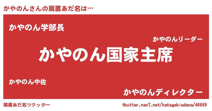 | 欧米人風あだ名 | 『かやのんクリステル』 |