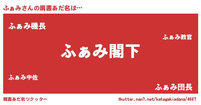 | 男性向けラノベタイトル風あだ名 | 『魔法科高校のふぁみ』 |