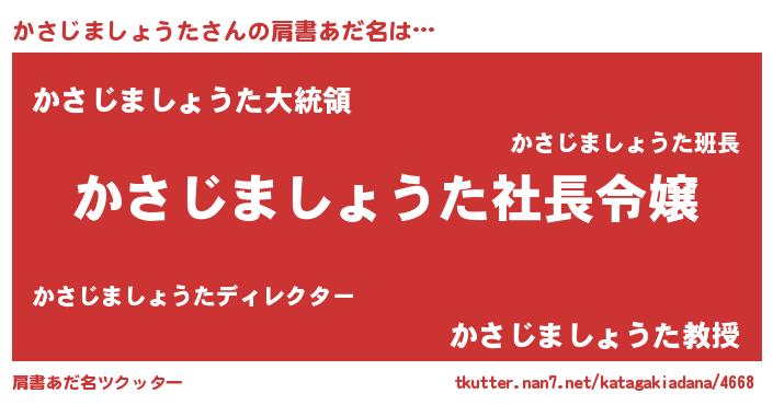 | 男性向けラノベタイトル風あだ名 | 『かさじましょうたの憂鬱』 |