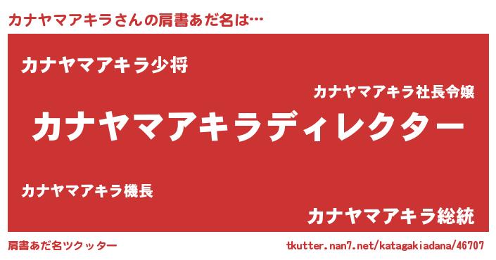 | 恥ずかしいあだ名 | 『カナヤマアキラデラックス』『カナちん』 |