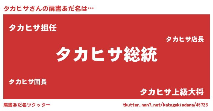 | ファンタジー風あだ名 | 『ゼタカトゥ』『タカディッシュ』 |