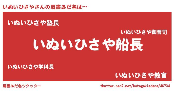 | 男性向けラノベタイトル風あだ名 | 『うちのいぬいひさやが世界を掌握している!』 |