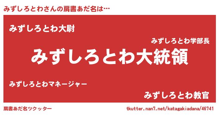 | 男性向けラノベタイトル風あだ名 | 『やはりみずしろとわの青春ラブコメはまちがっている 』 |