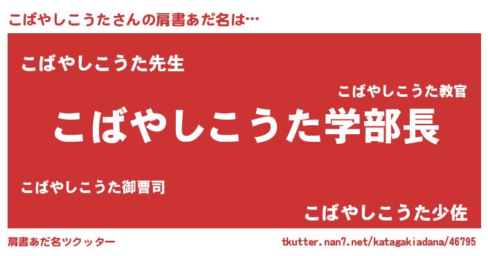 | ヘコむあだ名 | 『こばやしこうた(震え声)』『こばにー』 |