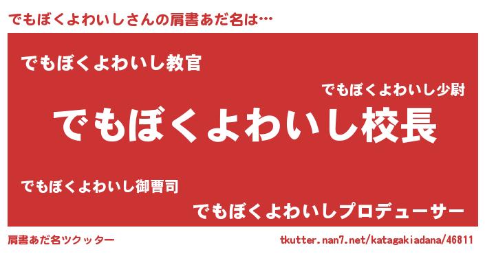 | ヘコむあだ名 | 『でもぼくよわいし(笑)』『でもっふぃ~』 |