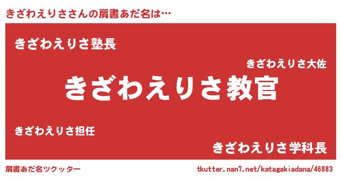 | 女子向けラノベタイトル風あだ名 | 『乙女ゲームの破滅フラグしかない悪役きざわえりさに転生してしまった…』 |