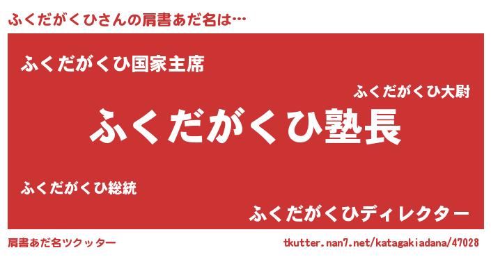 | ポケモン風あだ名 | 『ヒフクダガクヒ』『フクダダネ』 |