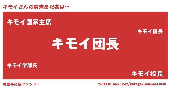 | ヒーロー風カッコイイあだ名 | 『暗黒騎士キモ』『ウルトラキモイマン』 |