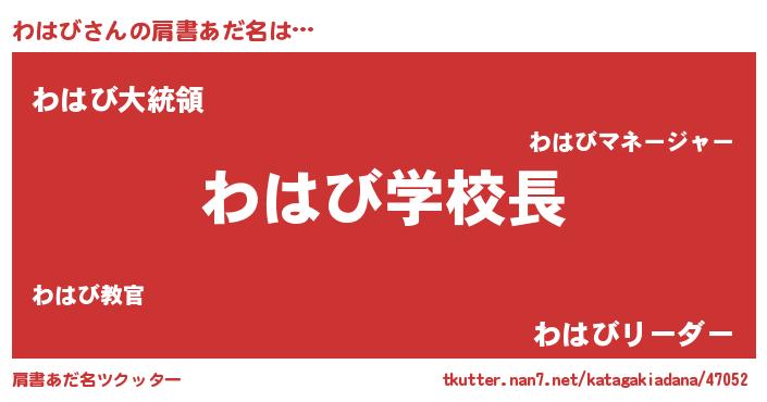 | ヒーロー風カッコイイあだ名 | 『天空の使者わはび』『魔戒騎士ワハ』 |
