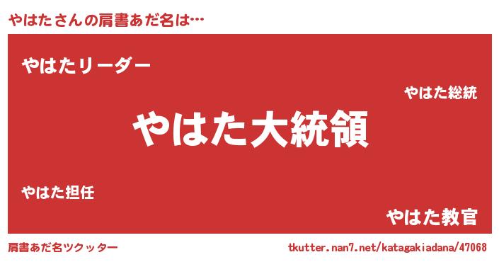 | ポケモン風あだ名 | 『ヤハタダネ』『ヒヤハタ』 |