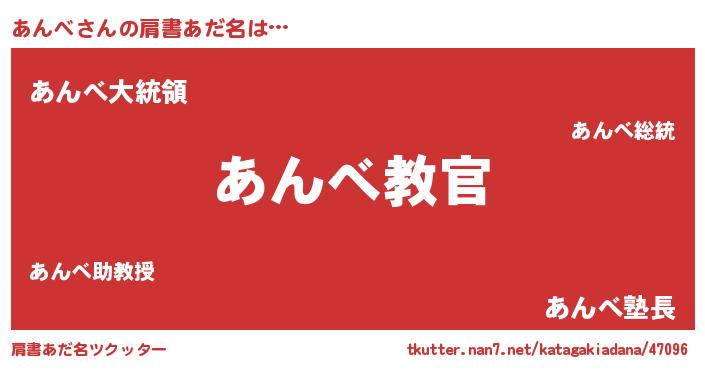 | 意味不明あだ名 | 『住所不定無職あんべ(8歳)』『自称あんべ』 |