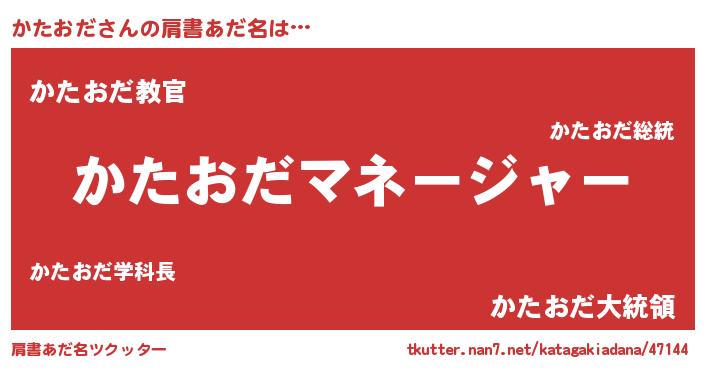 | 男性向けラノベタイトル風あだ名 | 『かたおだに滅ぼされるだけの簡単なお仕事です』 |