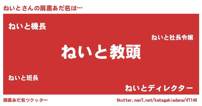 | ヘコむあだ名 | 『ねいと(笑)』『ねいもー』 |