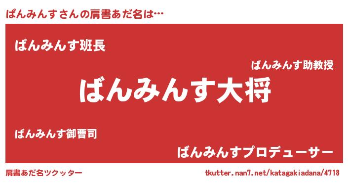 | ヒーロー風カッコイイあだ名 | 『魔戒騎士バン』『友情の使者ばんみんす』 |