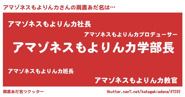 | ヒーロー風カッコイイあだ名 | 『慈愛の使者アマゾネスもよりんカ』 |