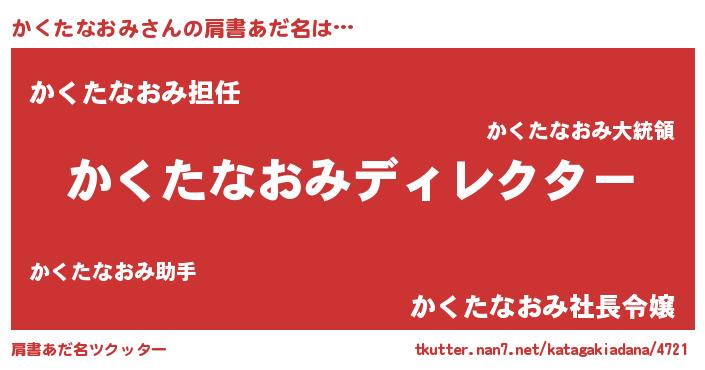 | 男性向けラノベタイトル風あだ名 | 『かくたなおみに滅ぼされるだけの簡単なお仕事です』 |