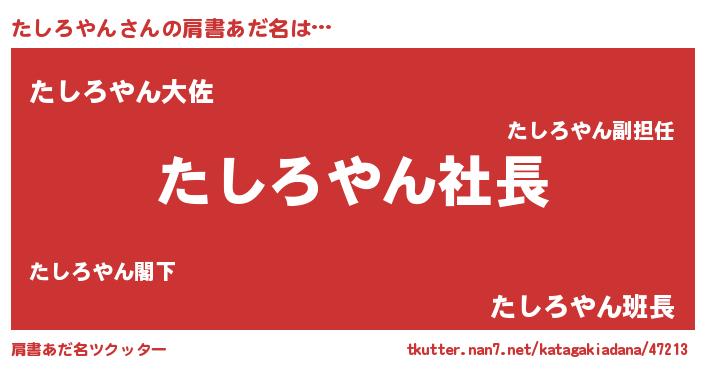 | ヒーロー風カッコイイあだ名 | 『スーパータシロヤン』『天弓騎士タシ』 |