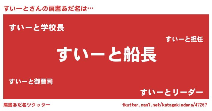 | ヒーロー風カッコイイあだ名 | 『愛の使者すいーと』『炎刃騎士スイ』 |