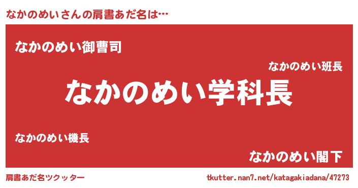 | ヒーロー風カッコイイあだ名 | 『慈愛の使者なかのめい』『銀牙騎士ナカ』 |