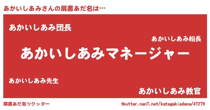 | ヘコむあだ名 | 『あか太郎』『あかいしあみ(小並感)』 |