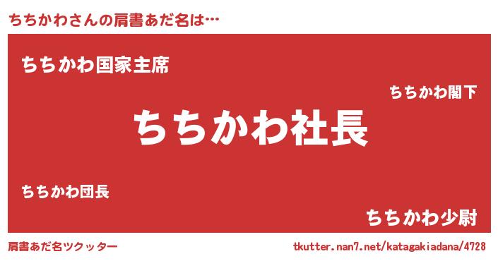 | ヒーロー風カッコイイあだ名 | 『スーパーチチカワ』『幻影騎士チチ』 |