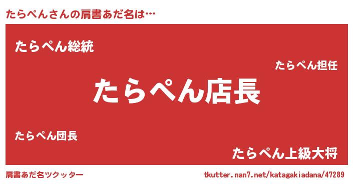 | 男性向けラノベタイトル風あだ名 | 『たらぺんの憂鬱』 |