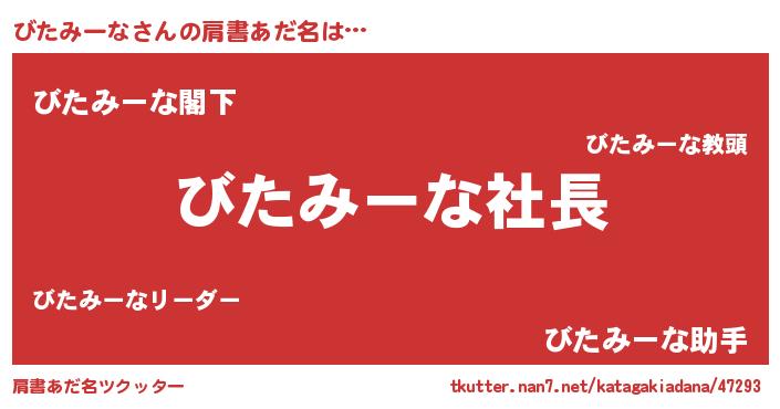 | ヘコむあだ名 | 『びたにー』『びたみーな(笑)』 |