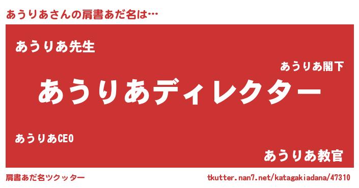 | ヘコむあだ名 | 『あうりあ(爆)』『あうにー』 |