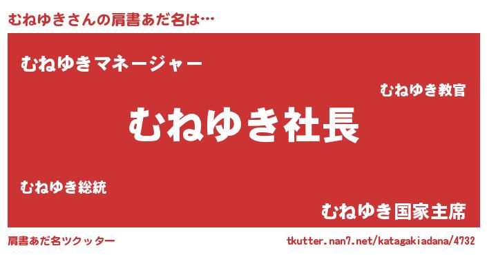 | 男性向けラノベタイトル風あだ名 | 『むねゆきの憂鬱』『魔弾の王とむねゆき』 |