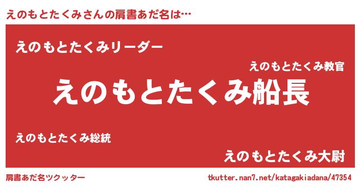 | 意味不明あだ名 | 『とにかく怪しいえのもとたくみ』 |