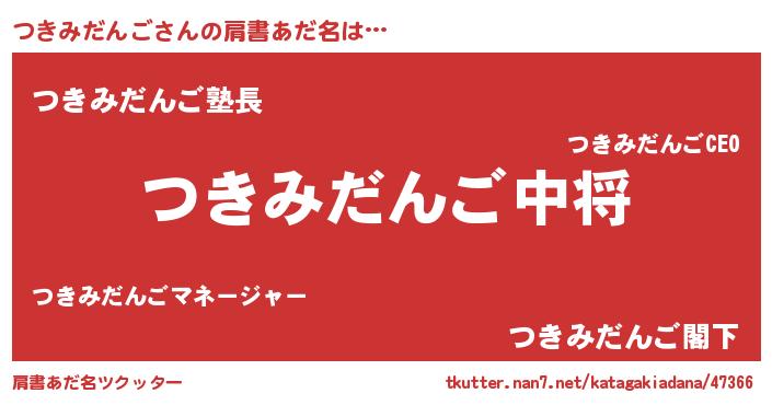 | 男性向けラノベタイトル風あだ名 | 『つきみだんご~年齢イコール彼女いない歴の魔法使い~』 |