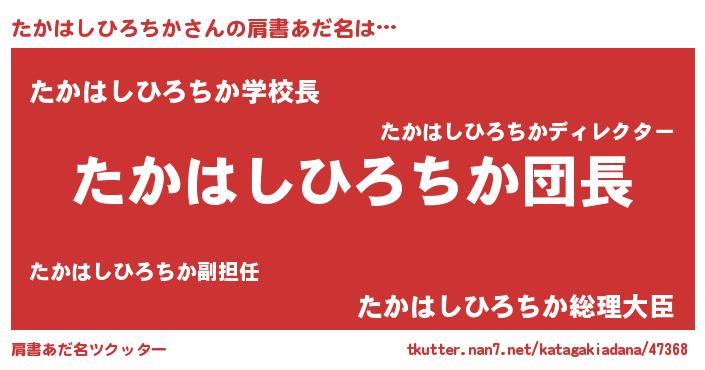 | 男性向けラノベタイトル風あだ名 | 『ダンジョンにたかはしひろちかを求めるのは間違っているだろうか』 |