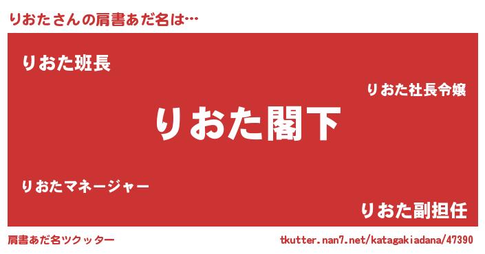 | 男性向けラノベタイトル風あだ名 | 『Re:りおたから始める異世界生活』 |