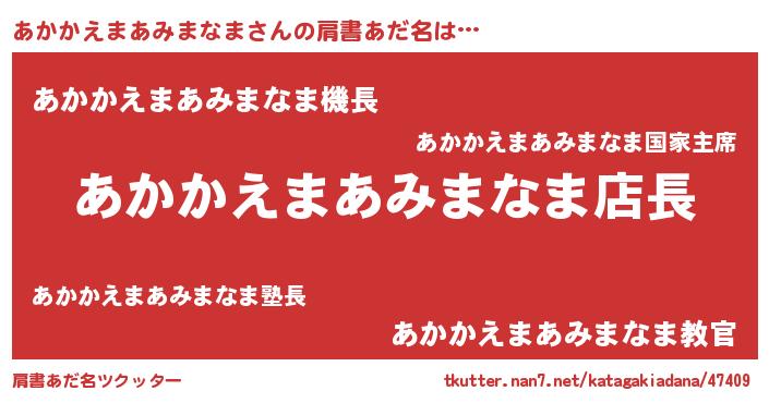 | 男性向けラノベタイトル風あだ名 | 『アカカエマアミマナマアートオンライン』 |