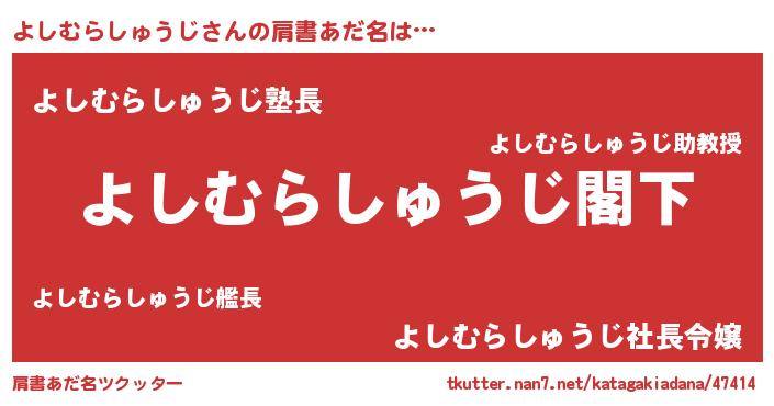 | 男性向けラノベタイトル風あだ名 | 『Re:よしむらしゅうじから始める異世界生活』 |