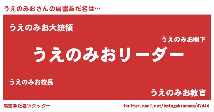 | 男性向けラノベタイトル風あだ名 | 『ダンジョンにうえのみおを求めるのは間違っているだろうか』 |