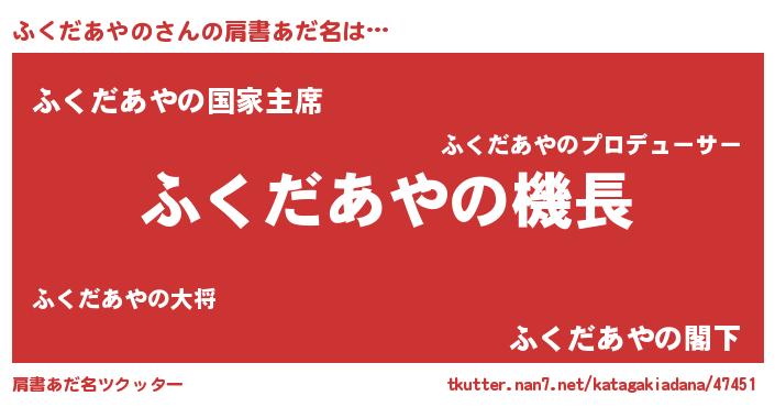 | 欧米人風あだ名 | 『ふくだあやの・ステッグマイヤー』 |