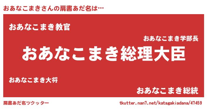 | 意味不明あだ名 | 『おあなこまきフォーエバー』 |