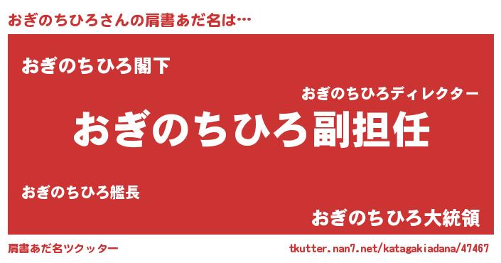 | ヒーロー風カッコイイあだ名 | 『ネオオギノチヒロ』『仮面オギダー』 |