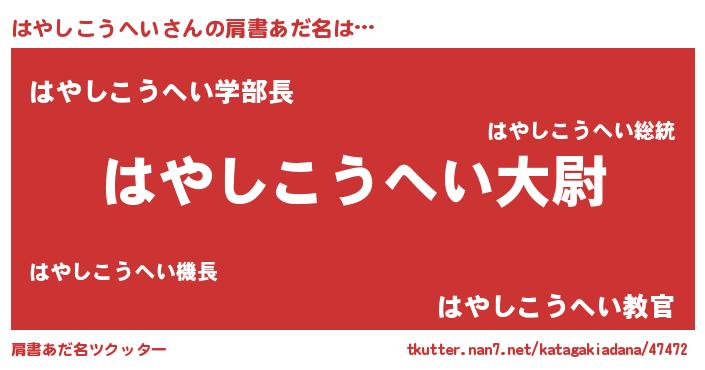 | 意味不明あだ名 | 『なめこ科はやしこうへい属』 |