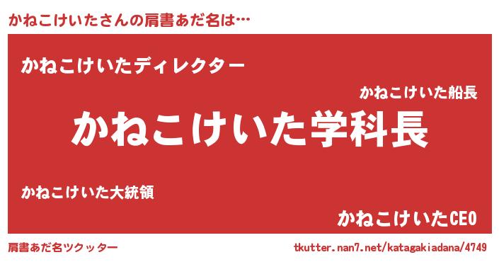 | ヒーロー風カッコイイあだ名 | 『愛の使者かねこけいた』『仮面カネダー』 |
