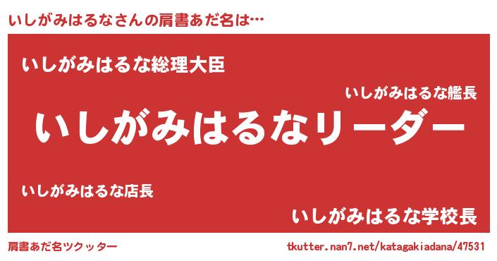 | ポケモン風あだ名 | 『ヒイシガミハルナ』『イシガダネ』 |