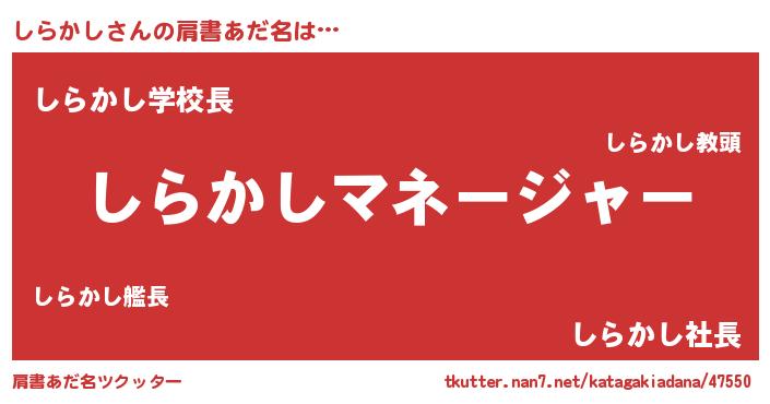 | 男性向けラノベタイトル風あだ名 | 『しらかしに滅ぼされるだけの簡単なお仕事です』 |