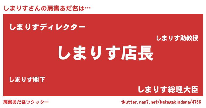 | 男性向けラノベタイトル風あだ名 | 『しまりすの憂鬱』 |