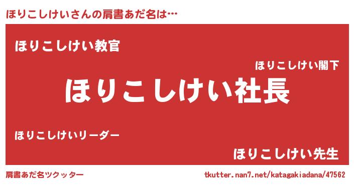 | 男性向けラノベタイトル風あだ名 | 『ほりこしけいの憂鬱』 |